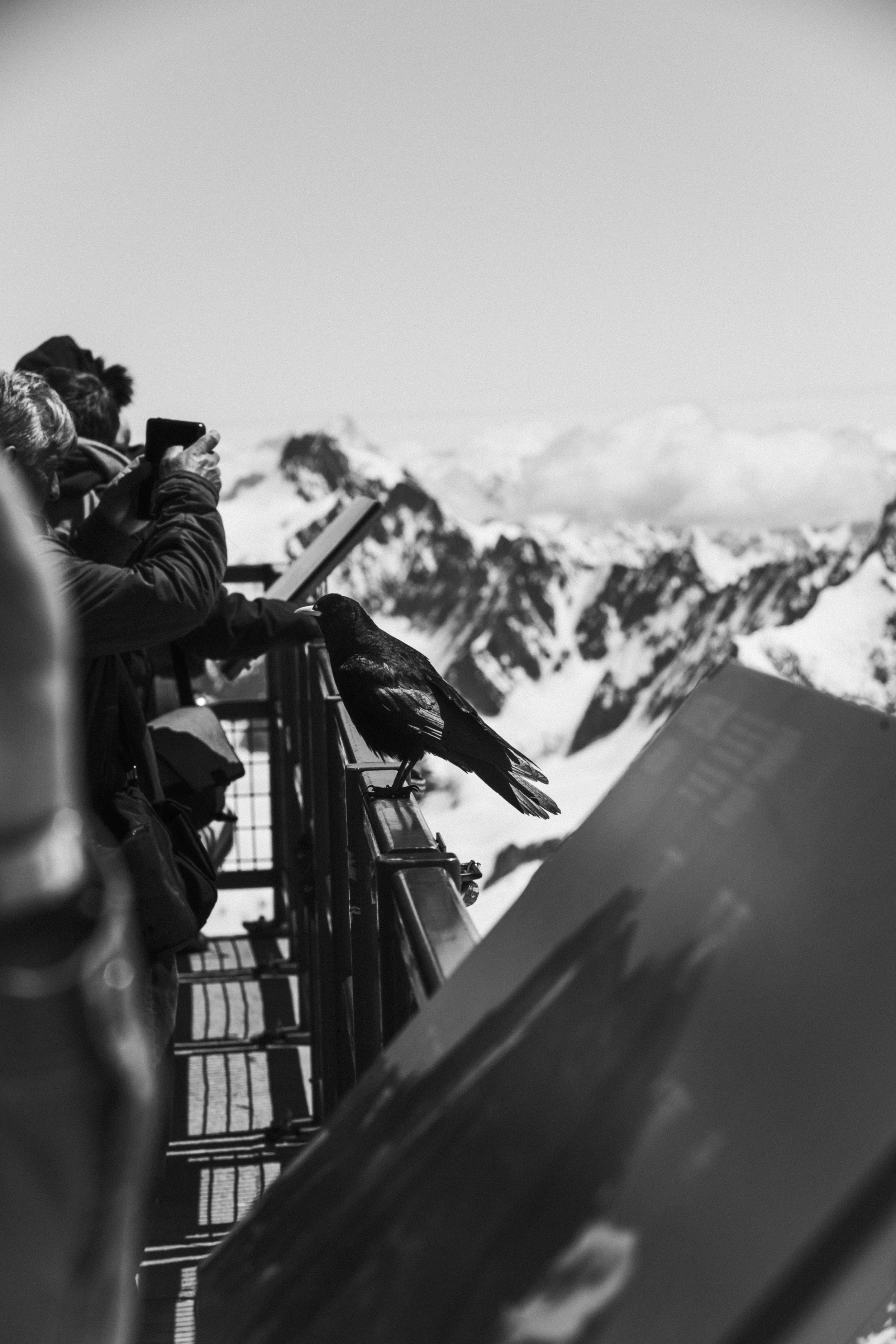 It was the first week of June in 2024 and we had just arrived into the Chamonix Valley. The deep cut valley sat below a thick cloud layer blocking out the mountains from view as a seemingly never-ending drizzle turned the glacial-fed rivers from turquoise blue to a deep silty gray. The next morning we planned to ascend the Aiguille du Midi, the forecast hinted at a weather window and we were hoping for mind-blowing mountain views and a break from the dreary late spring weather. That morning we awoke to birds singing and clear skies - this was indeed our window. As the cable car rolled steeply upward, paraglider’s danced across the blue sky around us. The Alps are so undeniably magnificent. Upon reaching the top, we exited through the tram station and into the cold and crisp high alpine air. As I inhaled deeply, attempting to gain my bearings on the elevation I was now perched at, I immediately noticed these interesting little black crows.