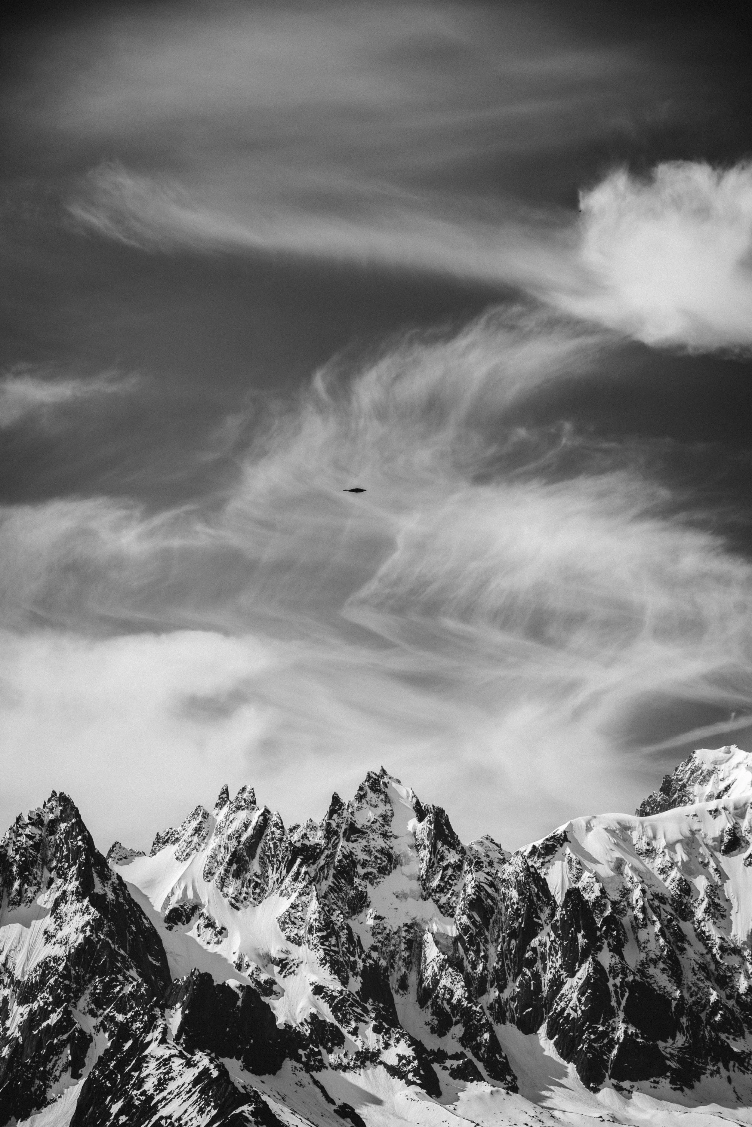 Throughout the next several days spent exploring the alpine environment of the Alps, the personality of the little black crows continued to surprise me as I grew more and more infatuated with them. Their bravery was admirable as they navigated daily life in a wildly rugged environment with extreme confidence and nonchalance. By the conclusion of my trip to Chamonix I found that the birds had even influenced my own confidence. Despite their smaller size they were never deterred by the hostile environment, turning their head and wings into the wind with no hesitation. They set the ultimate example of believing in yourself. And now I too wanted to live life like the black crows of the Alps. Free, fearless, and full of spirit.