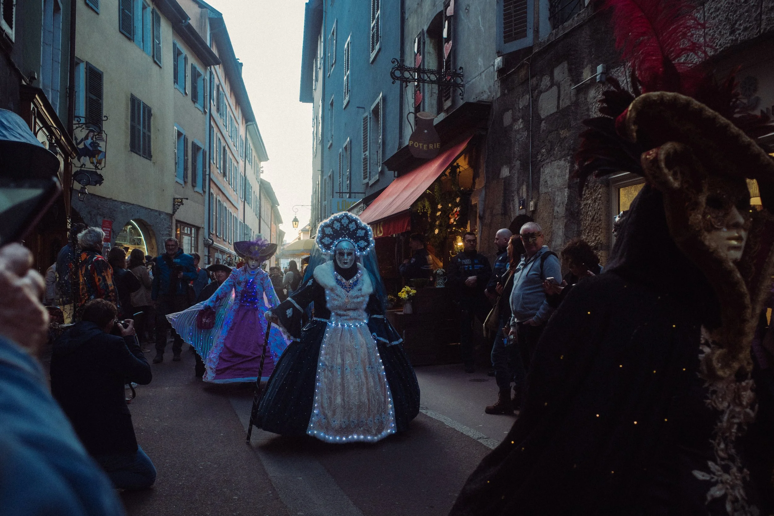 The Venetian Carnival, in the Annecy old-town. A tradition of mysterious masquerading that occurs near the end of winter, and is quite the tourist attraction.